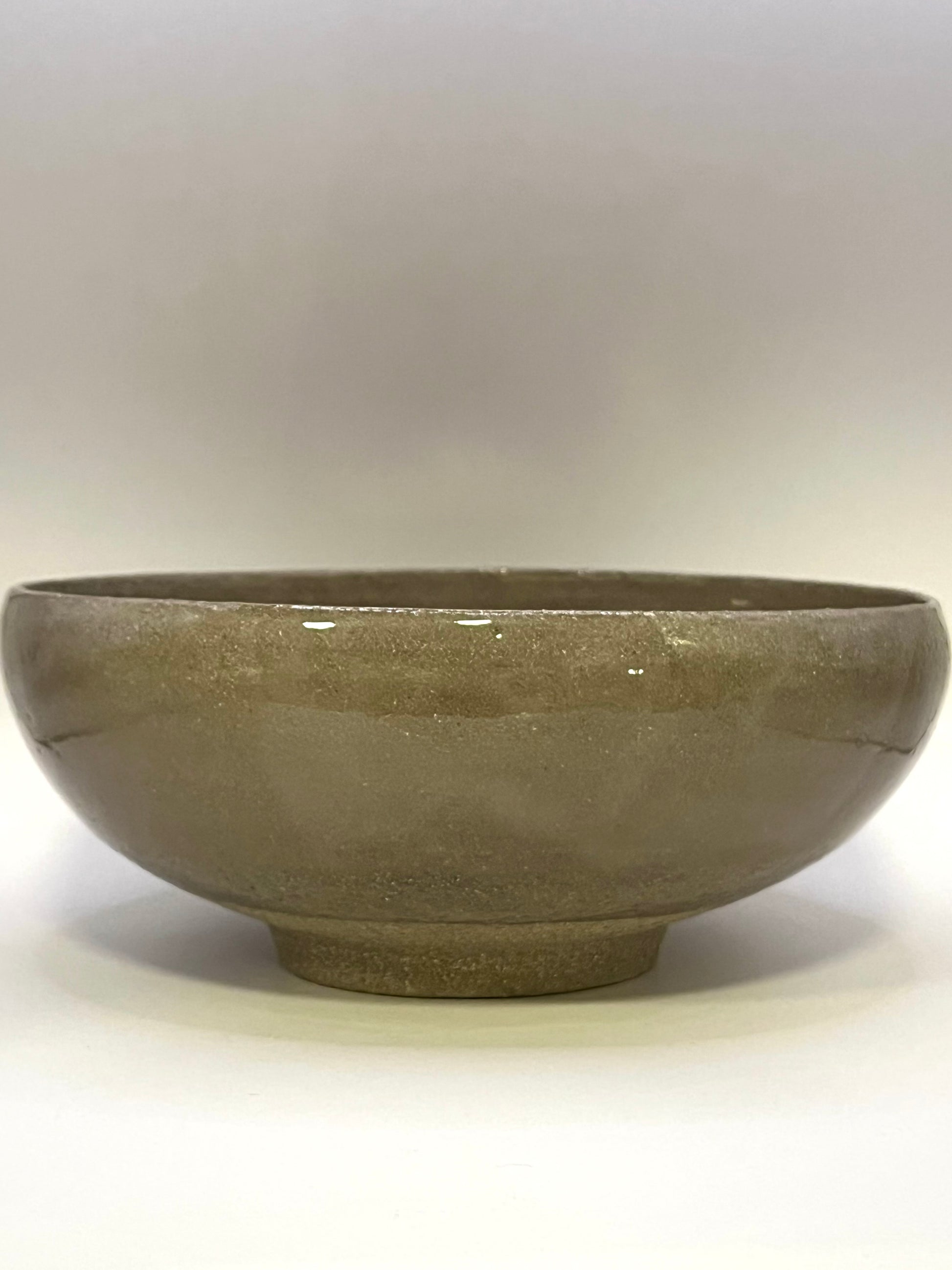 Coupe ou saladier en grès chamotté, dense et robuste, conçu pour un usage décoratif ou alimentaire. Son émail transparent et brillant souligne la teinte naturelle de la terre, tandis que la partie inférieure non émaillée révèle la texture brute de la chamotte, mettant en avant son authenticité.