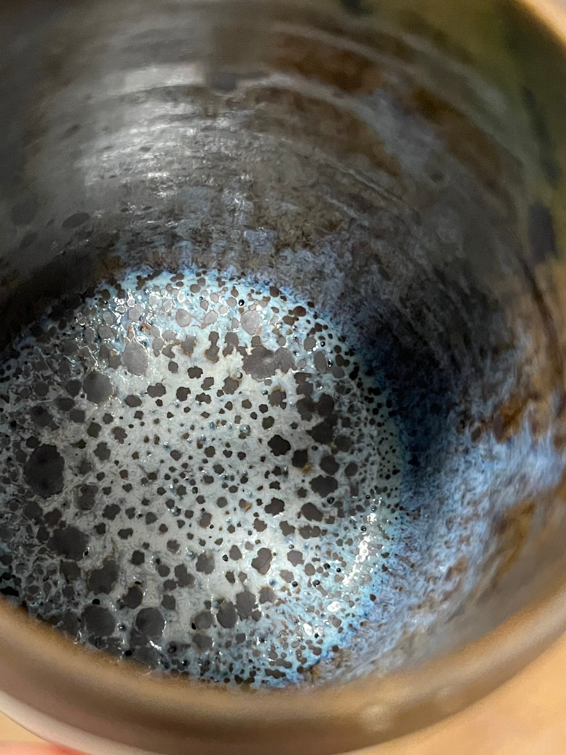 Finition : Intérieur et col extérieur émaille bleu de fer et extérieur porcelaine brut (aspect mat)