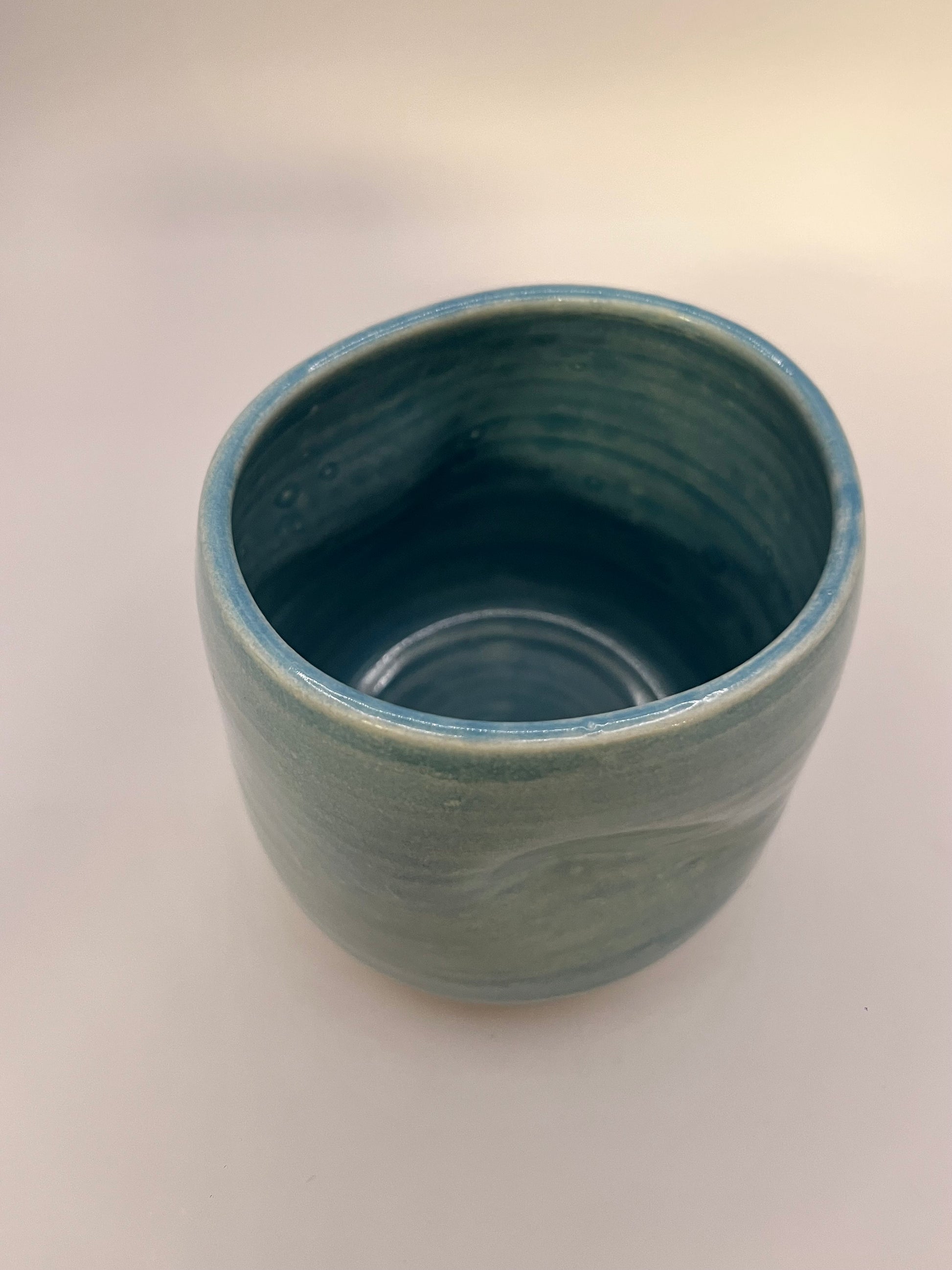 Ce gobelet bleu ciel en grès, tourné et déformé à la main, se distingue par son caractère artisanal. Multifonctionnel, il convient aussi bien comme tasse à thé, gobelet, pot à création ou porte-brosse à dents. Sa composition en grès assure robustesse et longévité, tandis que son esthétique singulière ajoute une note d’originalité à votre usage quotidien.