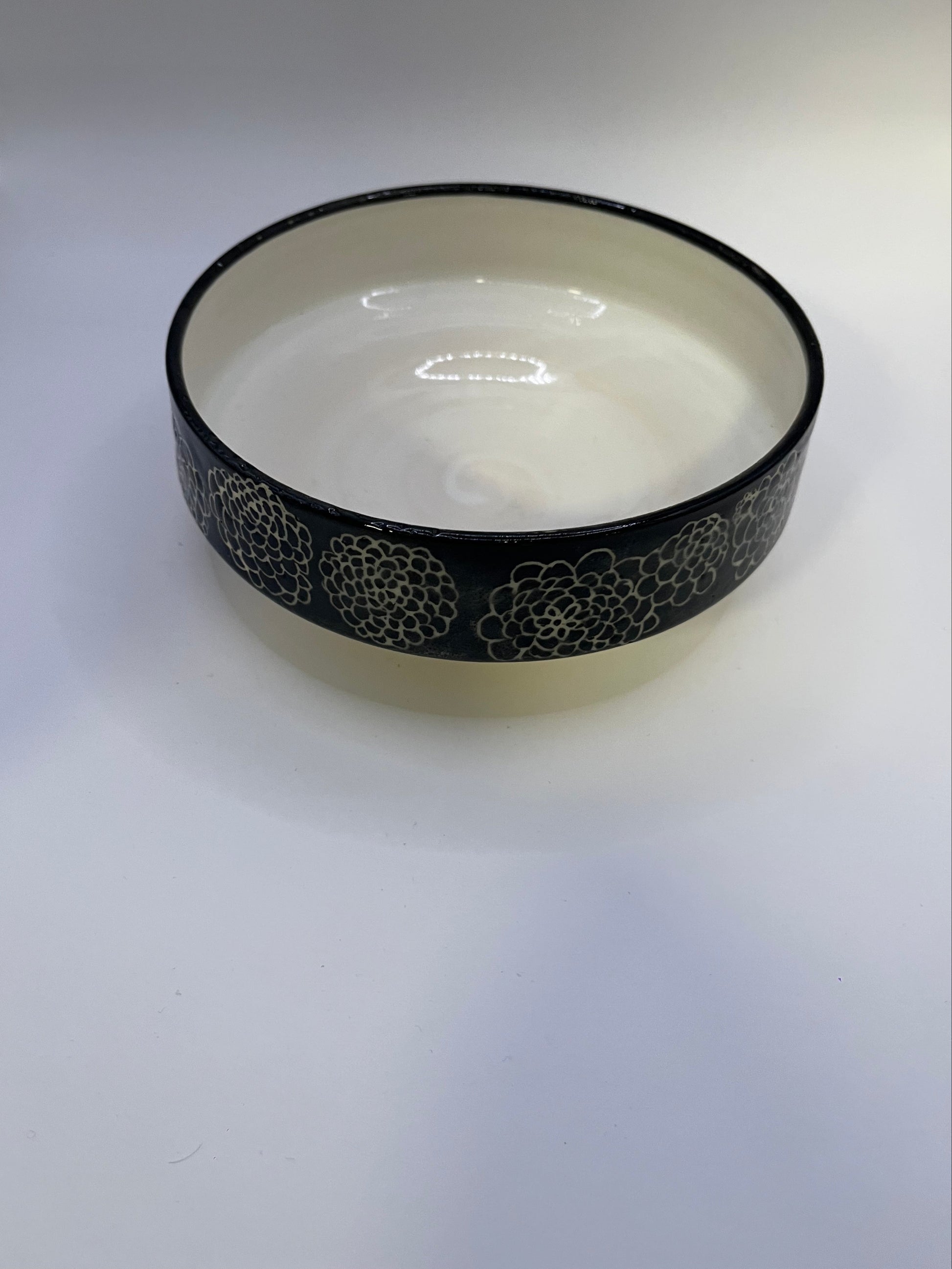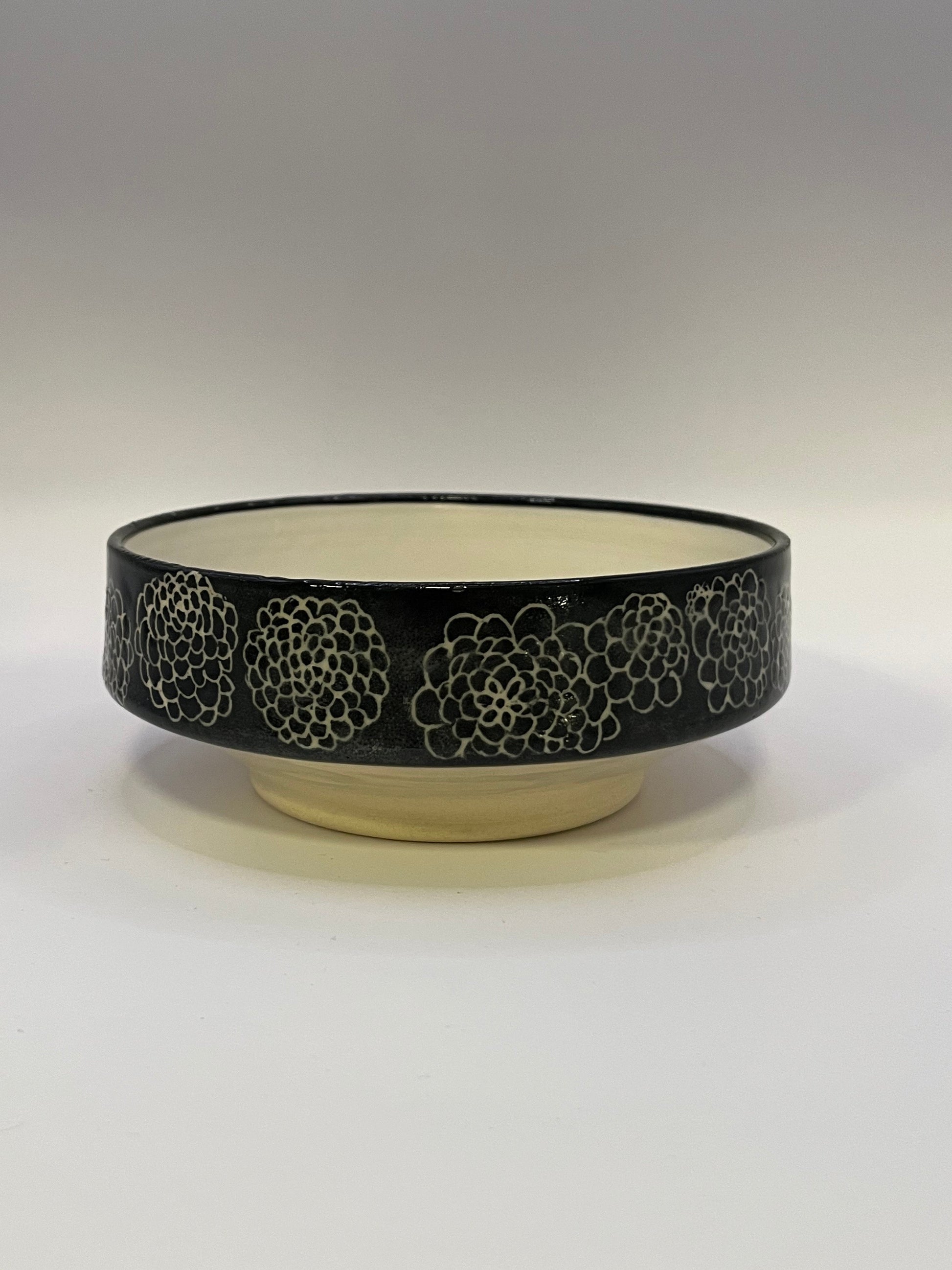 Ce petit saladier se distingue par son intérieur en engobe blanc lumineux, contrastant élégamment avec un extérieur noir orné de motifs floraux gravés à la main. Cette décoration texturée met en valeur un savoir-faire artisanal raffiné. Idéal pour présenter sauces ou hors-d’œuvre avec sophistication, il allie fonctionnalité et esthétique pour sublimer vos moments gourmands.
