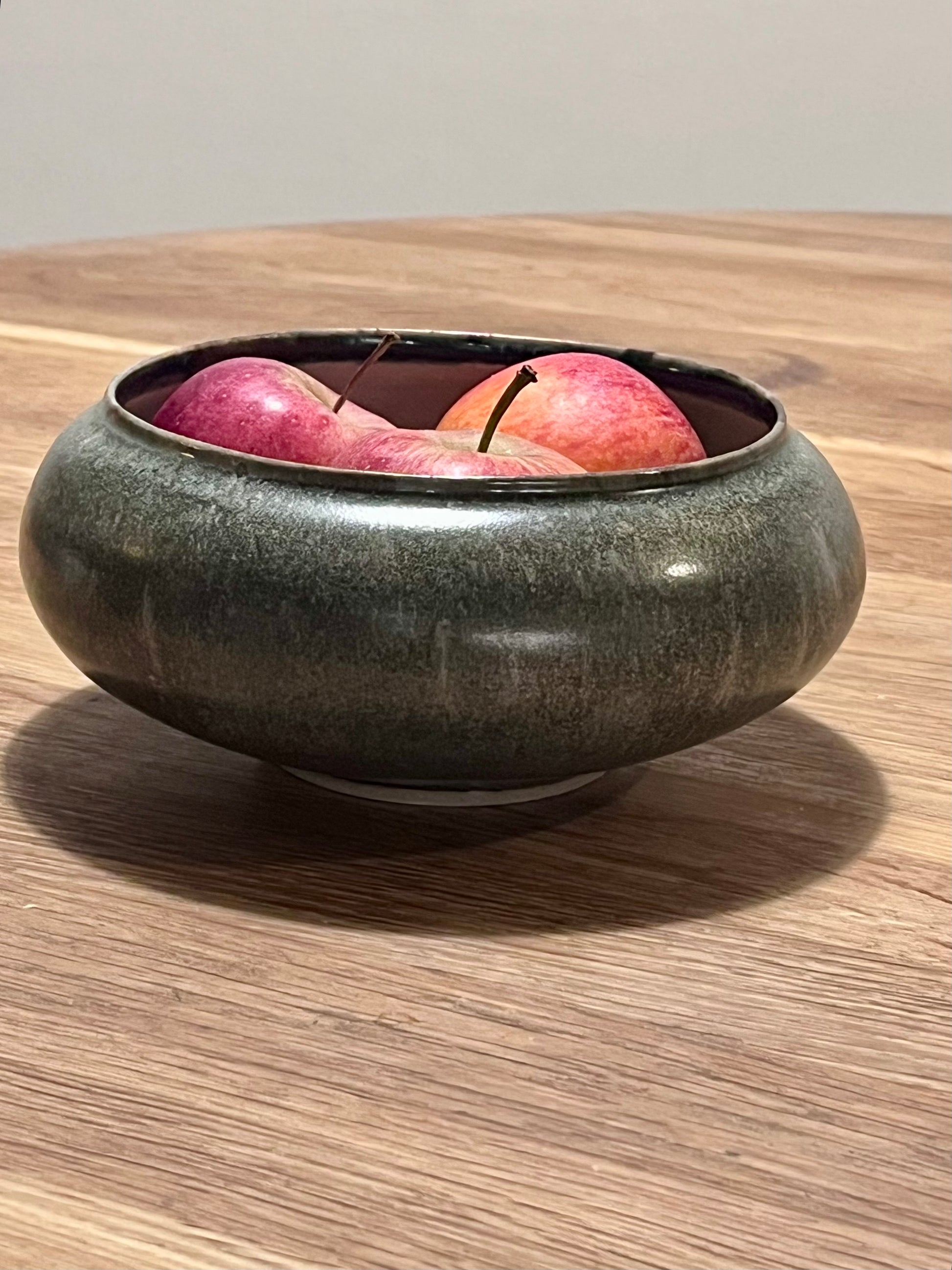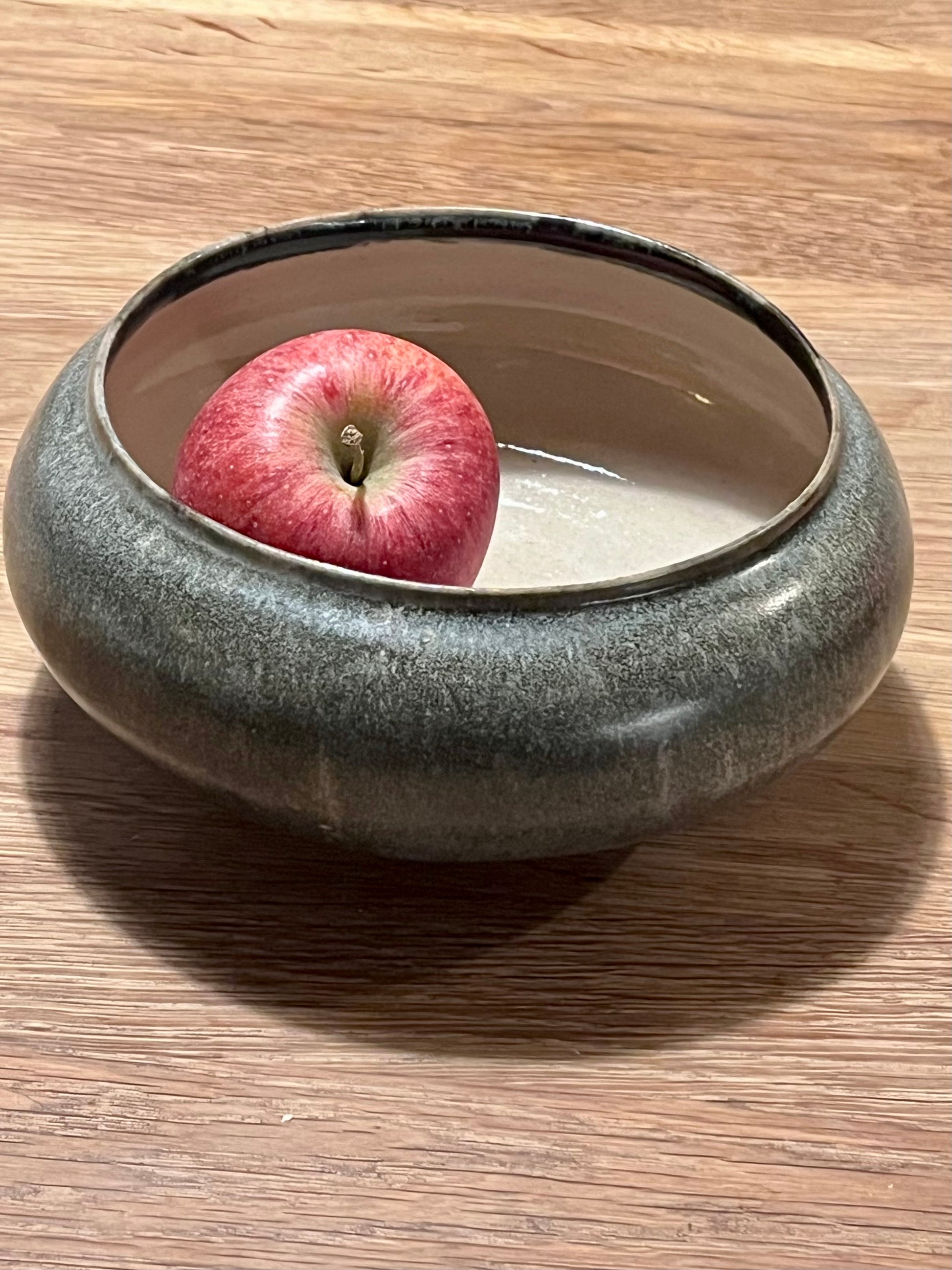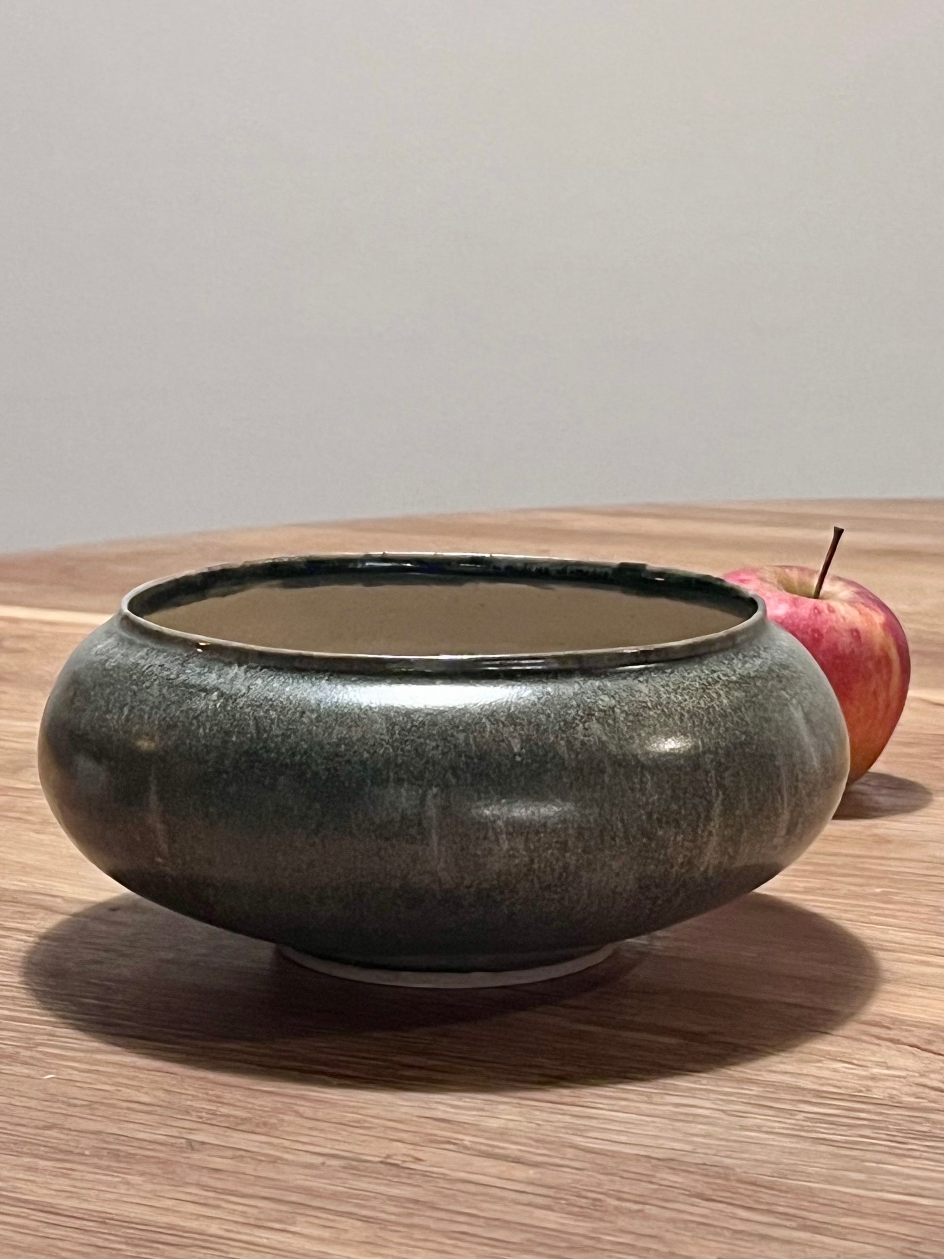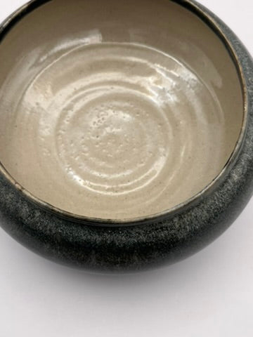 Finition : Intérieur émail transparent brillant et extérieur email gris satiné, base grès brut